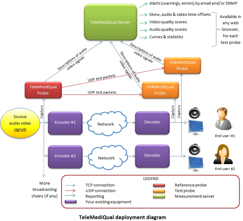 Then the probe will process audio and video signals, transform them into short descriptions and send these descriptions to the measurement server (with automatic reconnection if the connection gets lost).